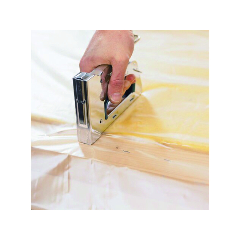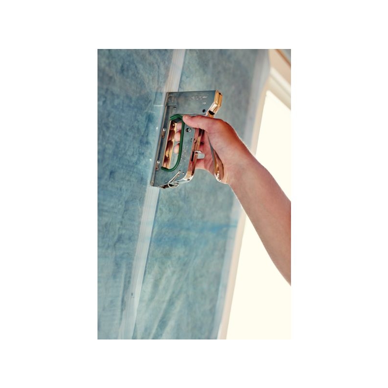 Convient pour la pose de dalles de plafond, de revêtements plastiques, de matériaux isolants. Corps acier chromé. Réglage de force 3 niveaux. Système antirecul. Chargement par le dessous. Utilise des agrafes n°140 de 6 à 14 mm. Chargeur : 84 agrafes Poids : 820 g