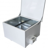 Chauffe-gamelles chantier en tôle pour réchauffer 10 à 12 gamelles. Couvercle rabattable avec poignée résistante à la chaleur. Plaque chauffante et intérieur en acier galvanisé. Parois calorifugées. Témoin lumineux de chauffe. Thermostat : 30° à 90°C Cordon d'alimentation : 169 cm Tension : 230 V