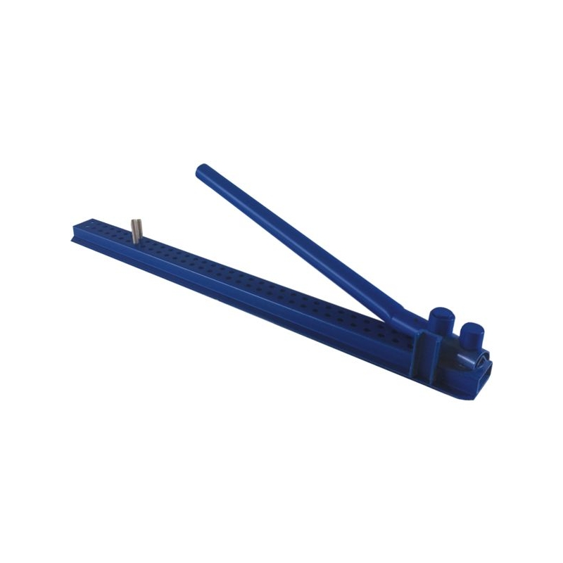 Pour fer à béton jusqu'à 12 mm. Fixation possible sur établi, madrier, etc. avec 6 vis non fournies. Longueur : 850 mm Largeur : 85 mm Poids : 5 kg Livrée avec 2 doigts de blocage.