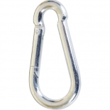 Mousqueton en C , finition acier zingué blanc . Coefficient de sécurité : 4 Conforme à la norme DIN 5299.
