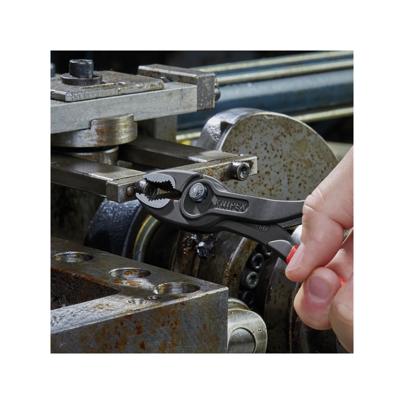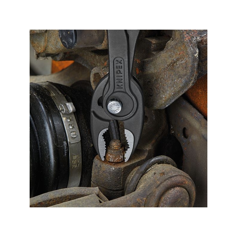 Préhension latérale ou frontale des pièces plates et serrage desserrage de vis à têtes usées. Pince très fine permettant le travail dans des endroits exigus. Articulation coulissante à 5 positions de réglage avec ajustement par bouton-poussoir. Poignées gainées PVC antidérapant. Denture trempée et forgée en acier électrique. Capacité tube : Ø 4 - 22 mm Capacité écrous : 4 - 22 mm Longueur : 200 mm